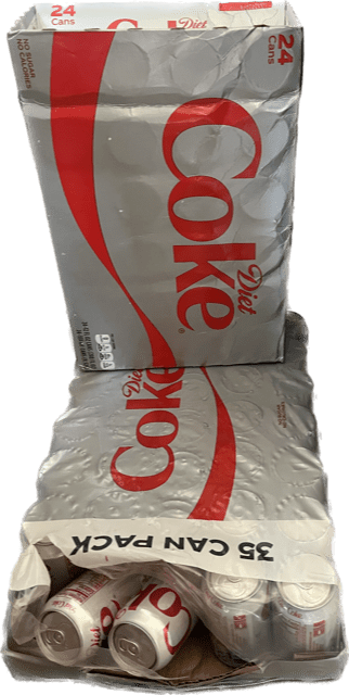 Down the frozen dinner aisle. “Do we have pizza at home?” “No. That’s why we’re here. I’m picking up pizza.” I load the cart with four pizzas which will last four days. “Do we need coke?” “No, we have it at home.”